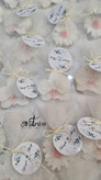 - اسم عروس و داماد به همراه تاریخ عروسی را برای چاپ لیبل اسم گیفت شمع بابونه در بخش یادداشت ثبت سفارش بنویسید(حتما بنویسید اسم ها به انگلیسی چاپ شود یا فارسی)