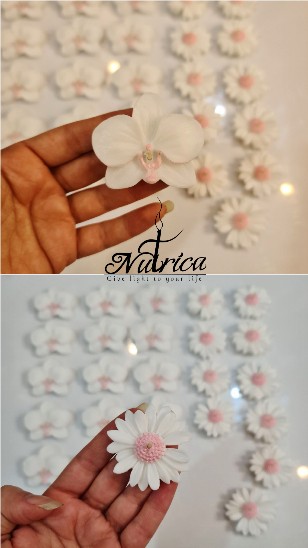 گیفت شمع بابونه و ارکیده به همراه لیبل اختصاصی