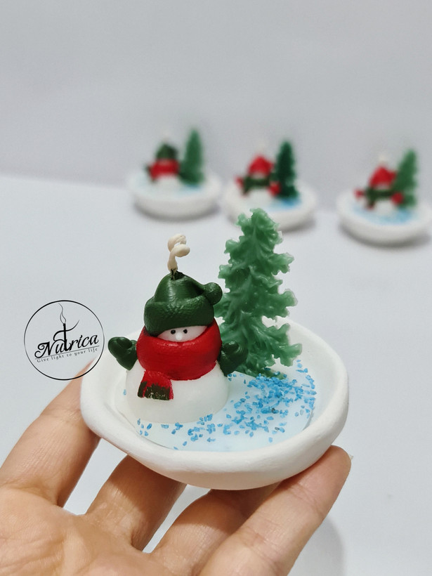 کاسه سنگ مصنوعی پر شده با تم زمستونی و آدم برفی