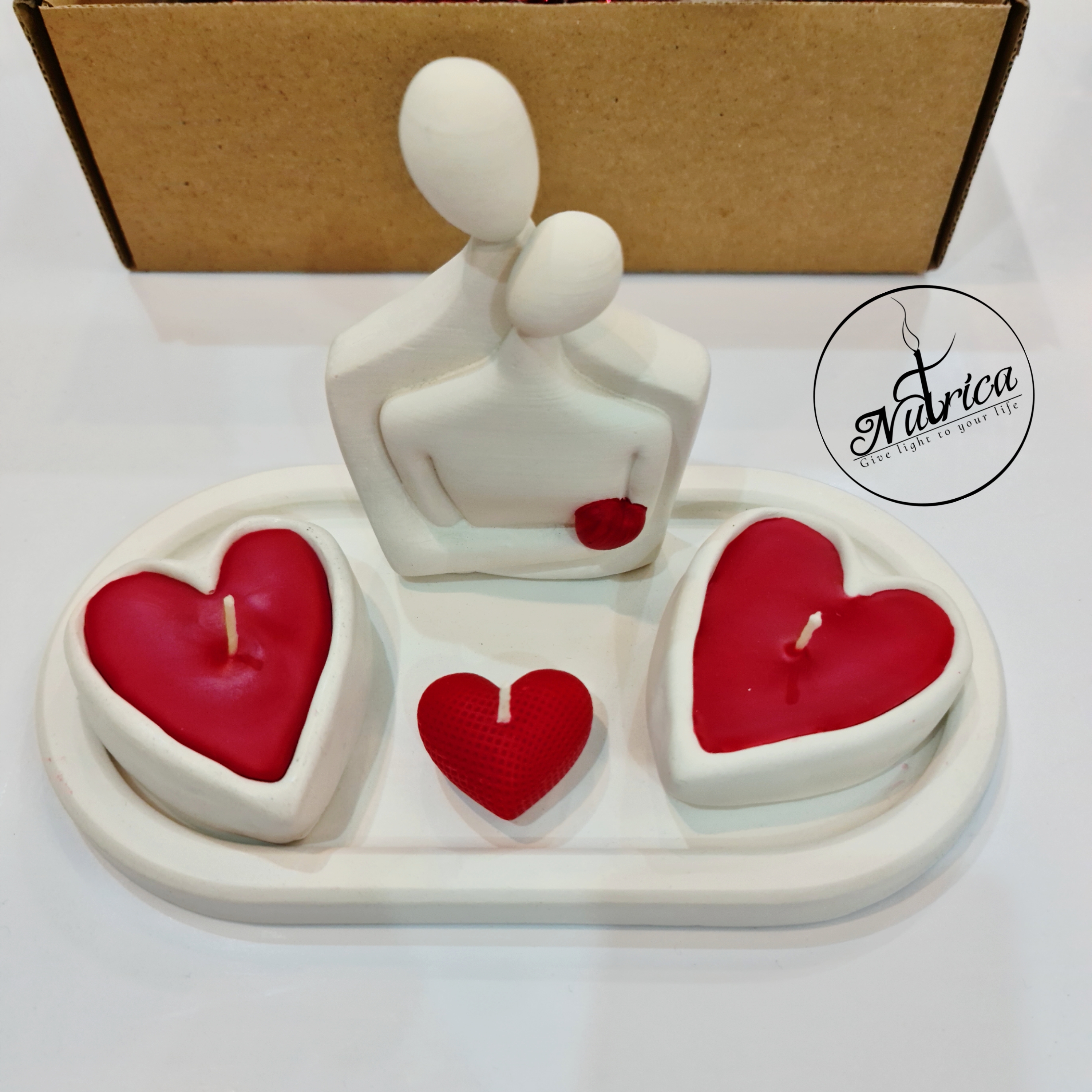 پک هدیه ولنتاین شامل شمع قلب سنگی و مجسمه آغوشی
