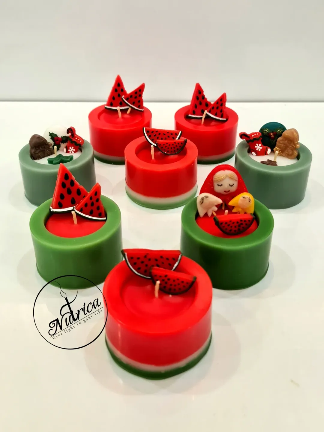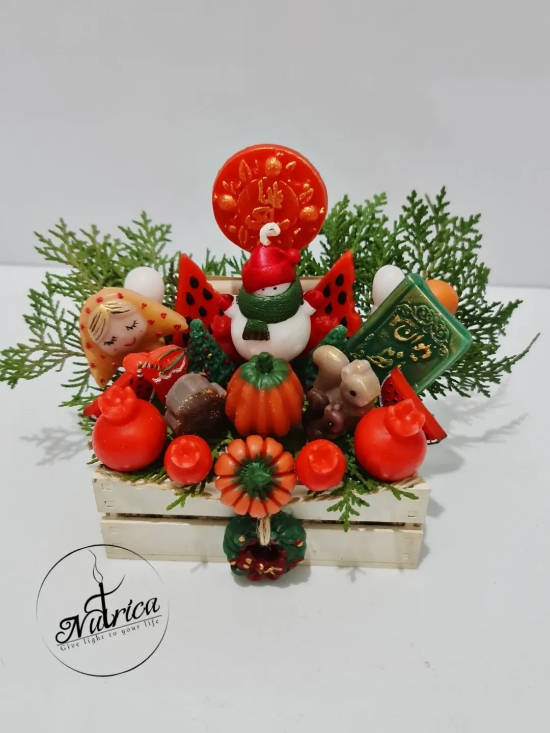 ظرف شمع کریسمس داخل شمع پودری به همراه تزئینات شمعی