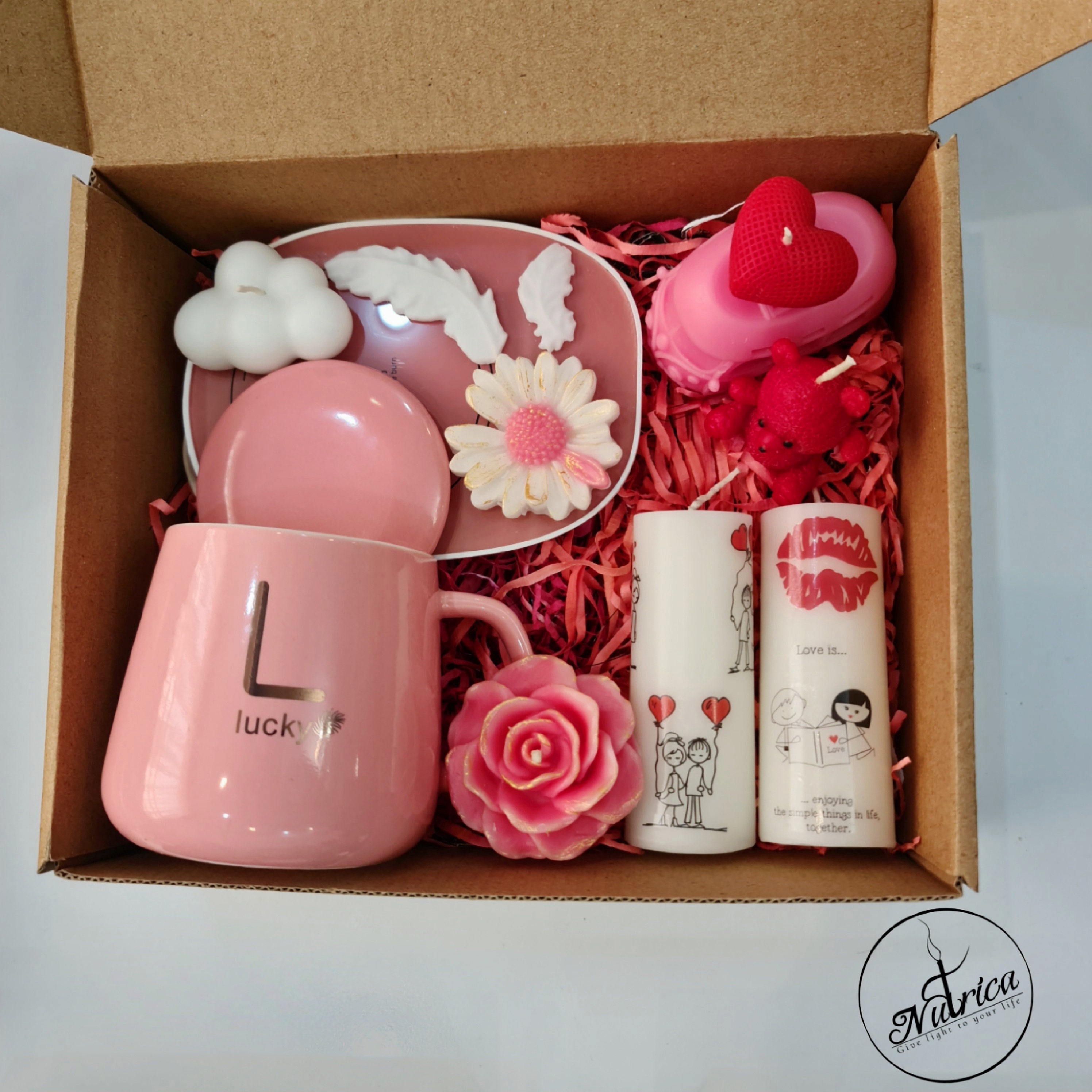 ناموجودپک هدیه ولنتاین شامل شمع قلب سنگی و استند طرح انگلیسی جای ساعت و حلقه و...