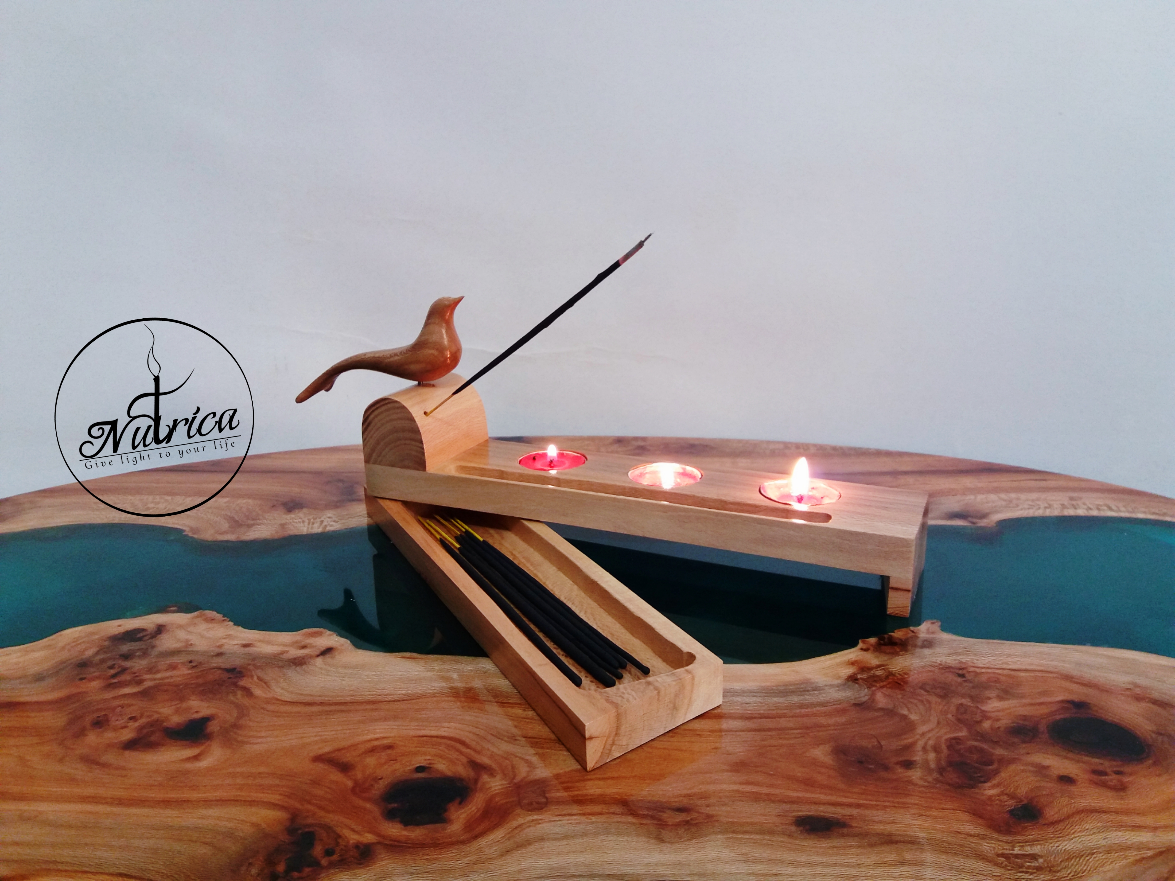 ست جاشمعی، جاعودی و گلدان چوبی برند نوتریکا